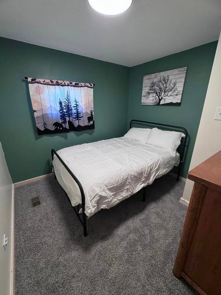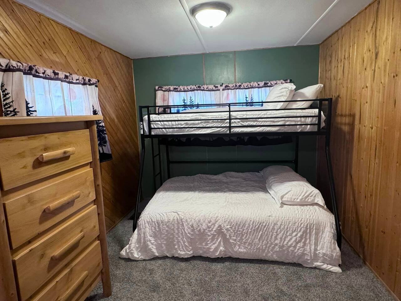 This rental comes with a propane grill for guests to use. There is a firepit in the back of the yard by the stream. The house is settled on 2 acres of flat land and located close to all local attractions. With possibility of elk viewing in the back yard. One bedroom is situated with a full bed. The second bedroom has a queen bed on one side and twin over full bunk bed on the other side. All linen and towels are included in your rental. There is a washer and dryer available to use. We also provide drinking water. There is a 6-person hot tub located on the back deck.
