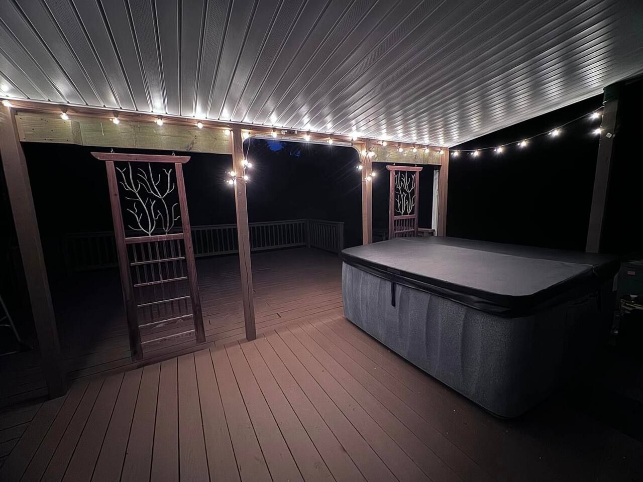 Guests get access to the entire house. There is a propane grill, fire pit, and a 6 person hot tub.